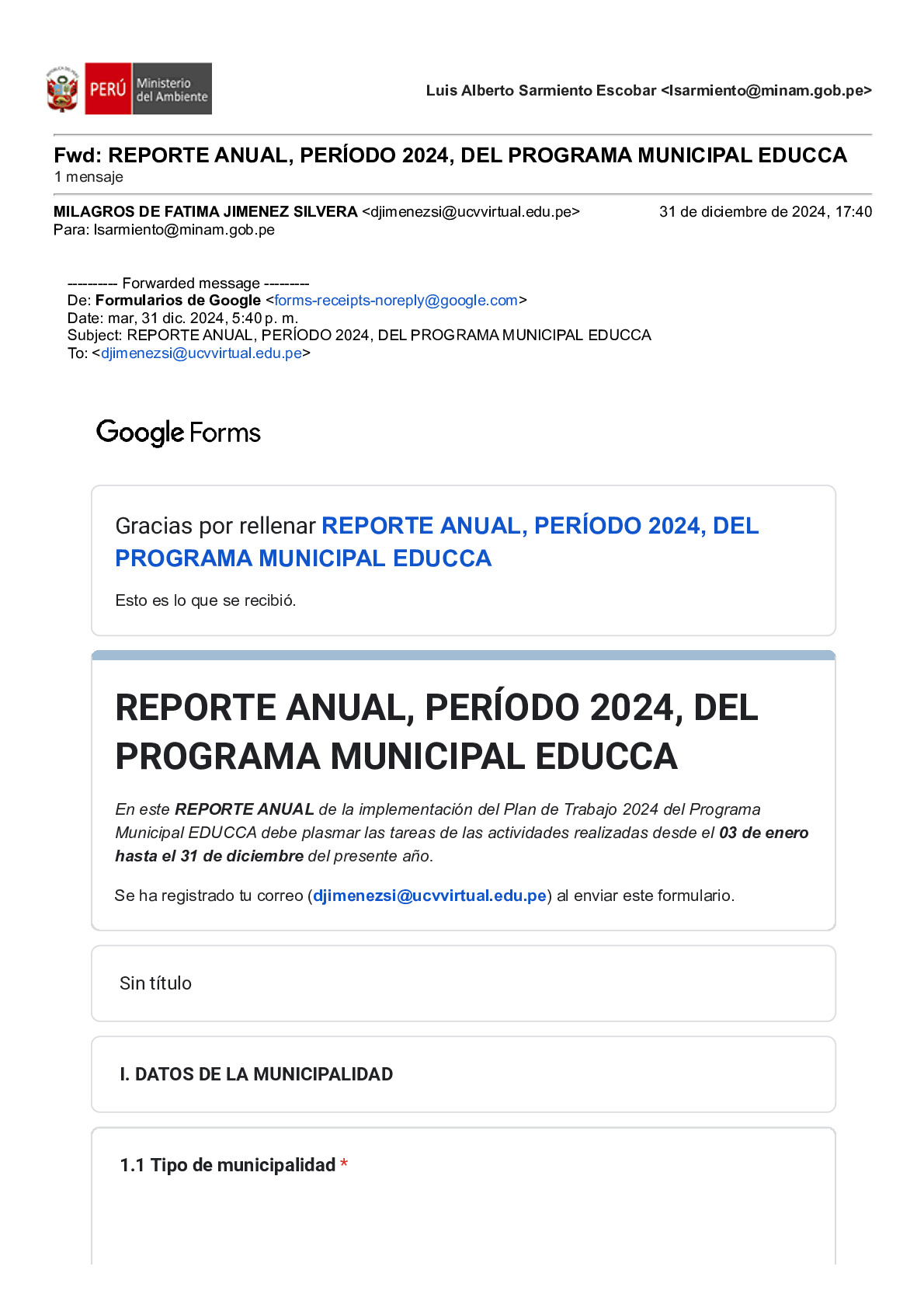 En este Reporte Anual de la implementación del Plan de Trabajo 2024 del Programa Municipal EDUCCA, se presentan las tareas y actividades realizadas durante el período del 3 de enero al 31 de diciembre de 2024. El documento ha sido elaborado por la Municipalidad Distrital de Aguas Verdes, provincia de Zarumilla, región Tumbes, como parte de sus acciones en el marco del Programa Municipal EDUCCA.