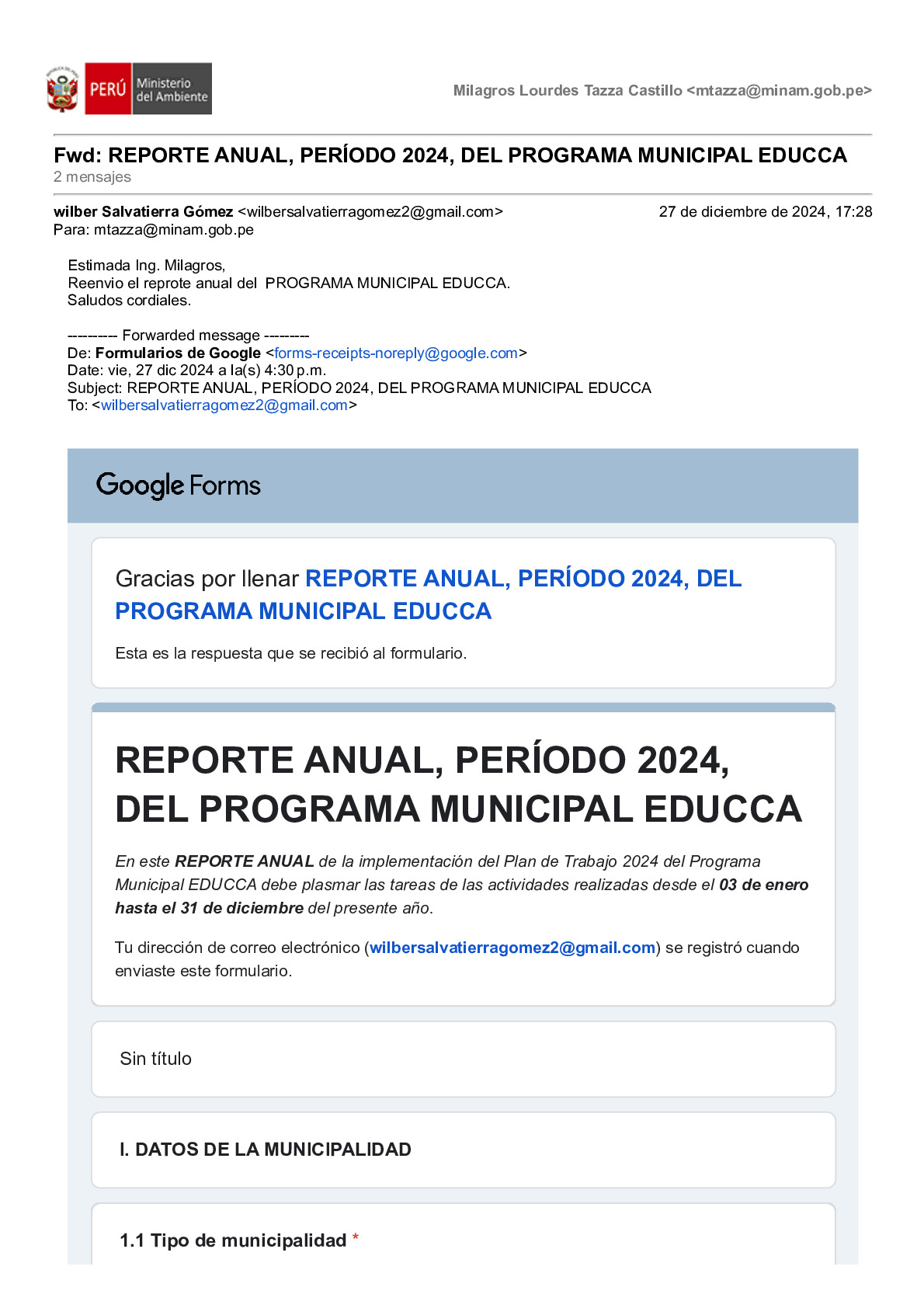 En este Reporte Anual de la implementación del Plan de Trabajo 2024 del Programa Municipal EDUCCA, se presentan las tareas y actividades realizadas durante el período del 3 de enero al 31 de diciembre de 2024. El documento ha sido elaborado por la Municipalidad Provincial de Cangallo, provincia de Cangallo, región Ayacucho, como parte de sus acciones en el marco del Programa Municipal EDUCCA.