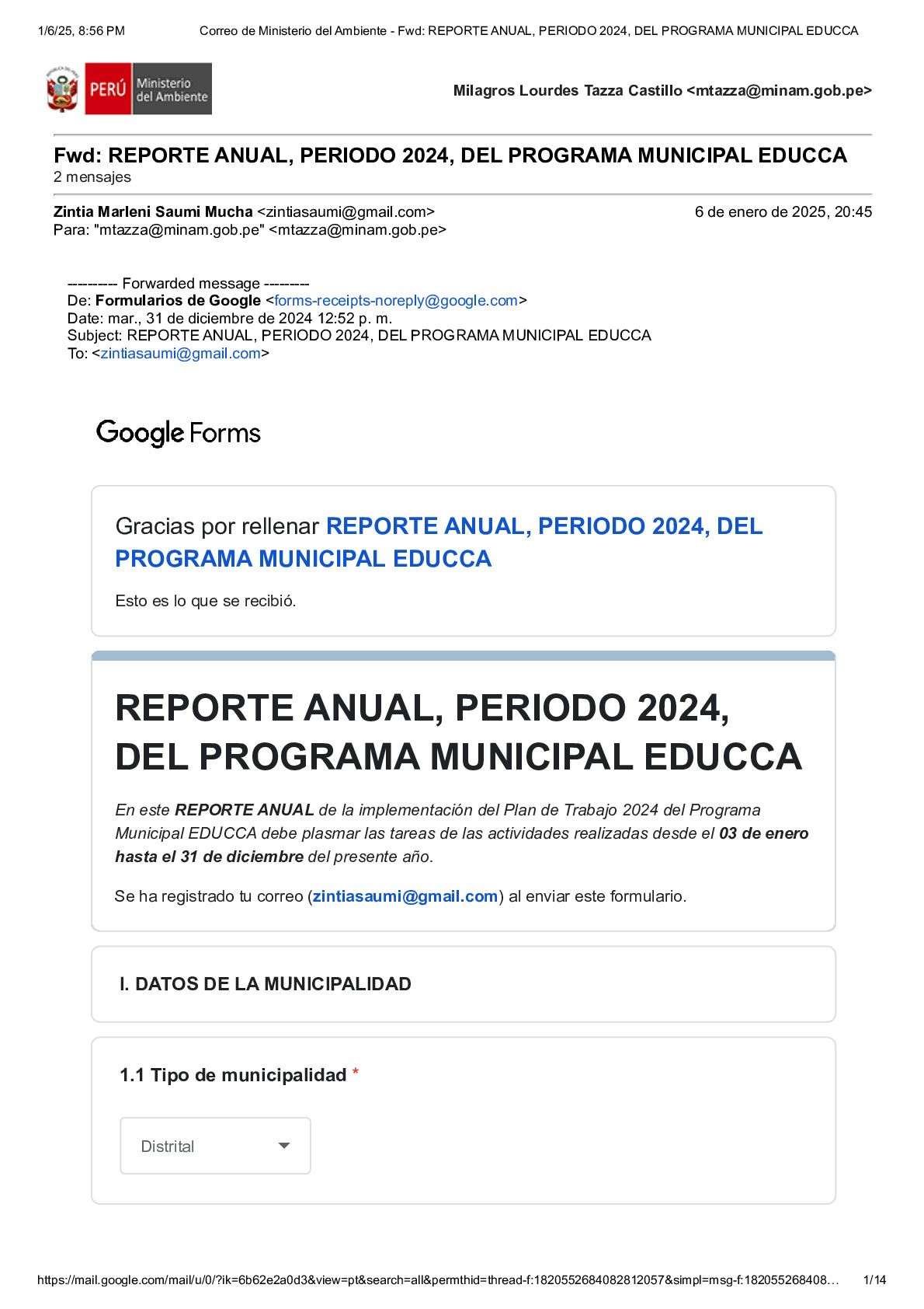 En este Reporte Anual de la implementación del Plan de Trabajo 2024 del Programa Municipal EDUCCA, se presentan las tareas y actividades realizadas durante el período del 3 de enero al 31 de diciembre de 2024. El documento ha sido elaborado por la Municipalidad Distrital de Jesús Nazareno, provincia de Huamanga, región Ayacucho, como parte de sus acciones en el marco del Programa Municipal EDUCCA.