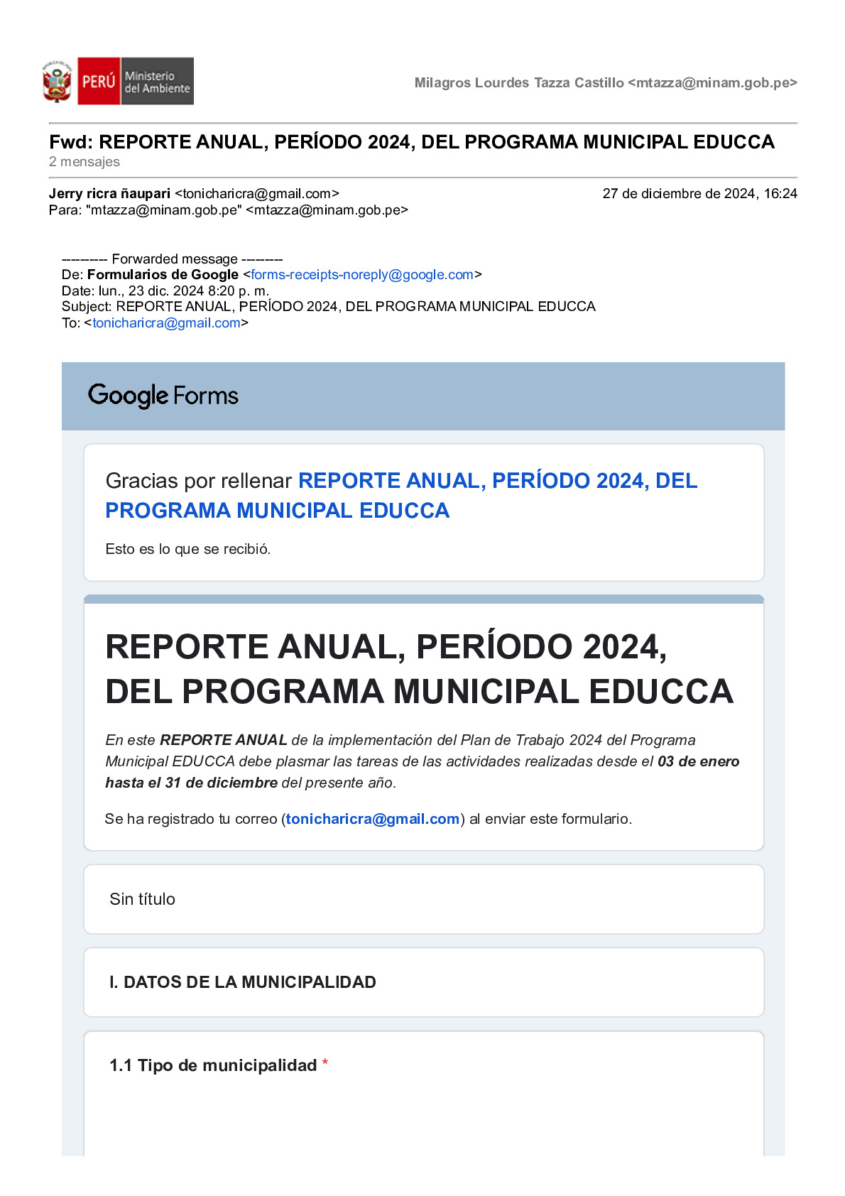 En este Reporte Anual de la implementación del Plan de Trabajo 2024 del Programa Municipal EDUCCA, se presentan las tareas y actividades realizadas durante el período del 3 de enero al 31 de diciembre de 2024. El documento ha sido elaborado por la Municipalidad Distrital de Chaca, provincia de Huanta, región Ayacucho, como parte de sus acciones en el marco del Programa Municipal EDUCCA.