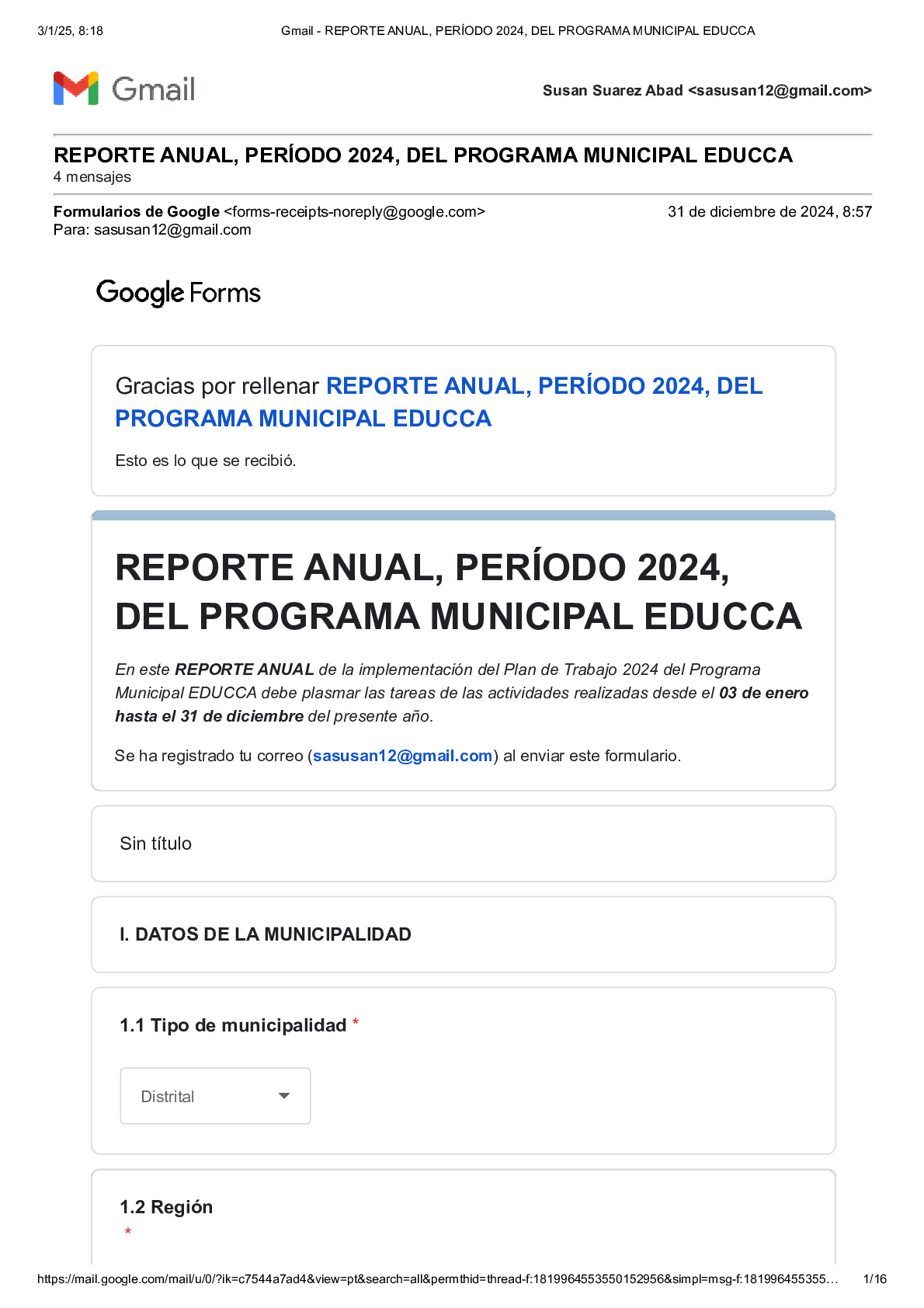 En este Reporte Anual de la implementación del Plan de Trabajo 2024 del Programa Municipal EDUCCA, se presentan las tareas y actividades realizadas durante el período del 3 de enero al 31 de diciembre de 2024. El documento ha sido elaborado por la Municipalidad Distrital de Santa Rosa, provincia de La Mar, región Ayacucho, como parte de sus acciones en el marco del Programa Municipal EDUCCA.