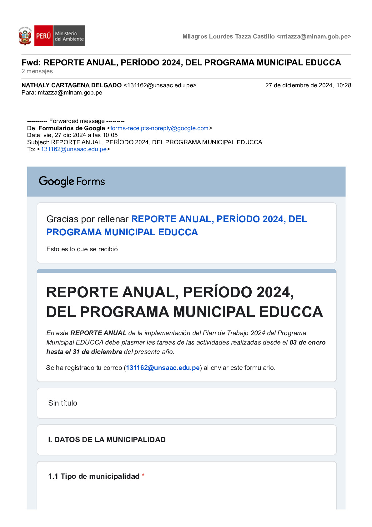 En este Reporte Anual de la implementación del Plan de Trabajo 2024 del Programa Municipal EDUCCA, se presentan las tareas y actividades realizadas durante el período del 3 de enero al 31 de diciembre de 2024. El documento ha sido elaborado por la Municipalidad Distrital de San Jerónimo, provincia de Cusco, región Cusco, como parte de sus acciones en el marco del Programa Municipal EDUCCA.