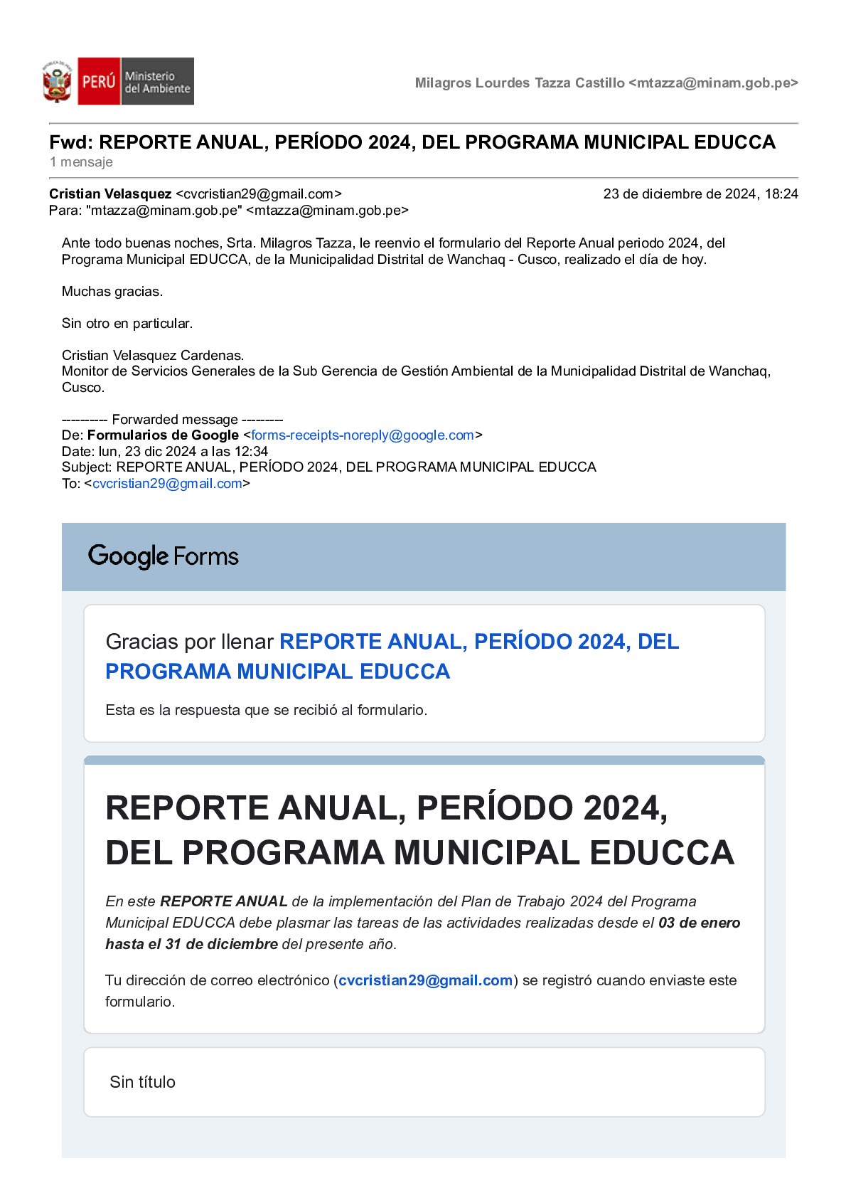 Reporte Anual 2024 del Programa Municipal EDUCCA de la Municipalidad Distrital de Wanchaq, Provincia de Cusco, Región Cusco