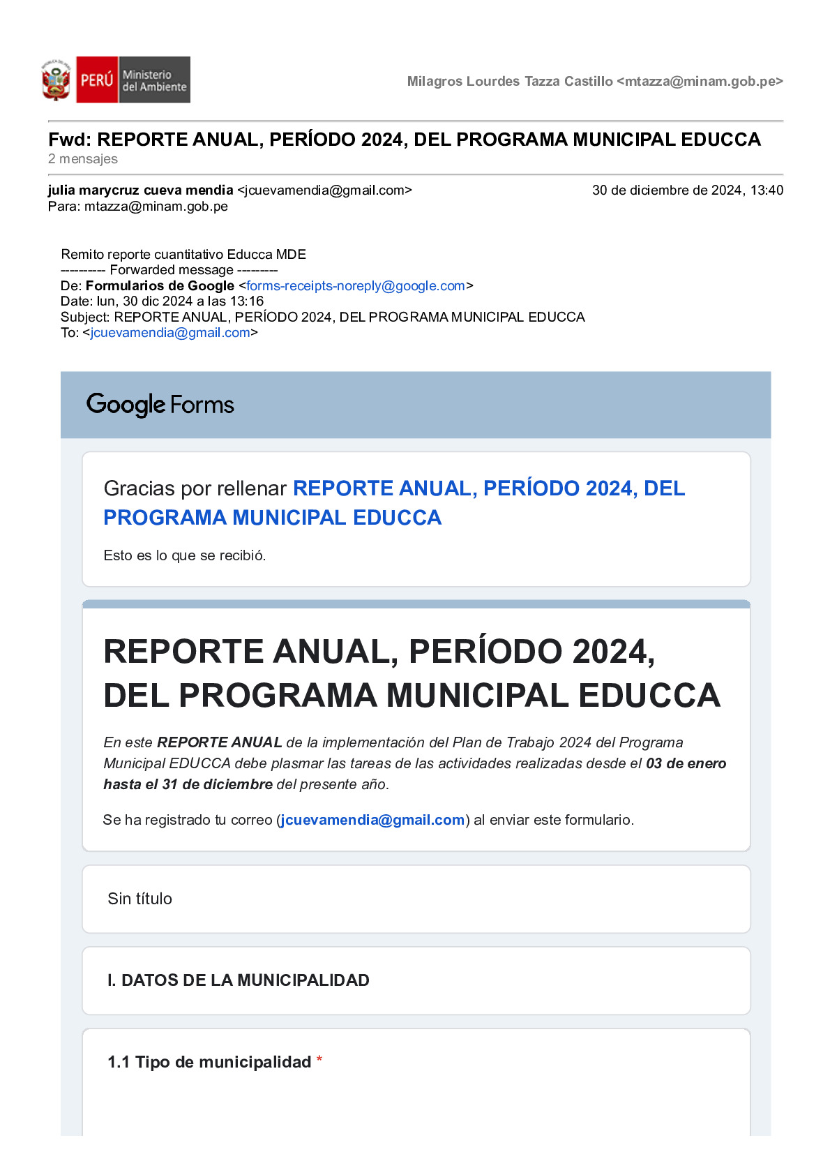 En este Reporte Anual de la implementación del Plan de Trabajo 2024 del Programa Municipal EDUCCA, se presentan las tareas y actividades realizadas durante el período del 3 de enero al 31 de diciembre de 2024. El documento ha sido elaborado por la Municipalidad Distrital de Echarate, provincia de La Convención, región Cusco, como parte de sus acciones en el marco del Programa Municipal EDUCCA.