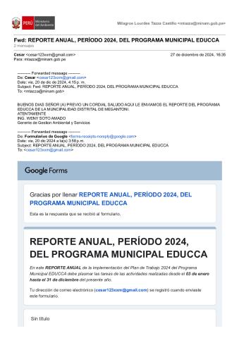 Reporte Anual 2024 del Programa Municipal EDUCCA de la Municipalidad Distrital de Megantoni, Provincia de La Convención, Región Cusco
