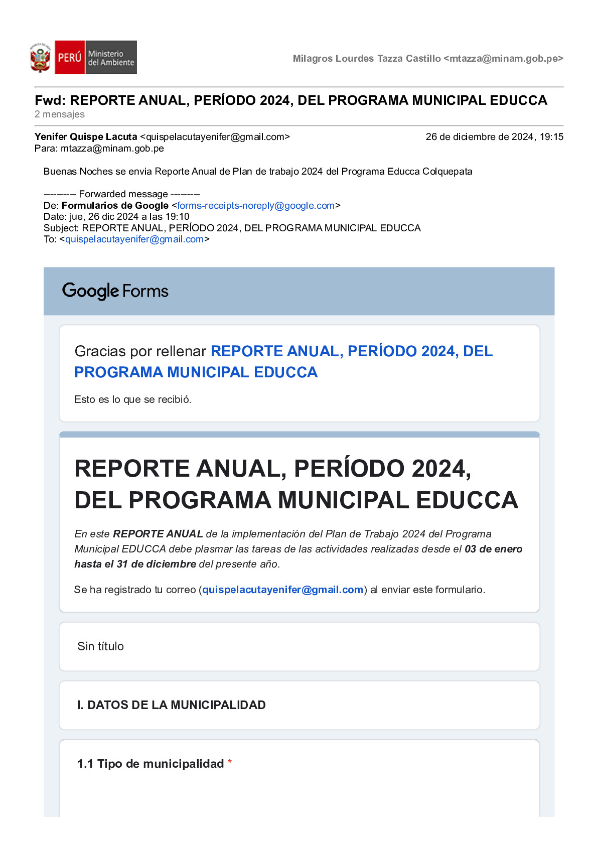 En este Reporte Anual de la implementación del Plan de Trabajo 2024 del Programa Municipal EDUCCA, se presentan las tareas y actividades realizadas durante el período del 3 de enero al 31 de diciembre de 2024. El documento ha sido elaborado por la Municipalidad Distrital de Colquepata, provincia de Paucartambo, región Cusco, como parte de sus acciones en el marco del Programa Municipal EDUCCA.
