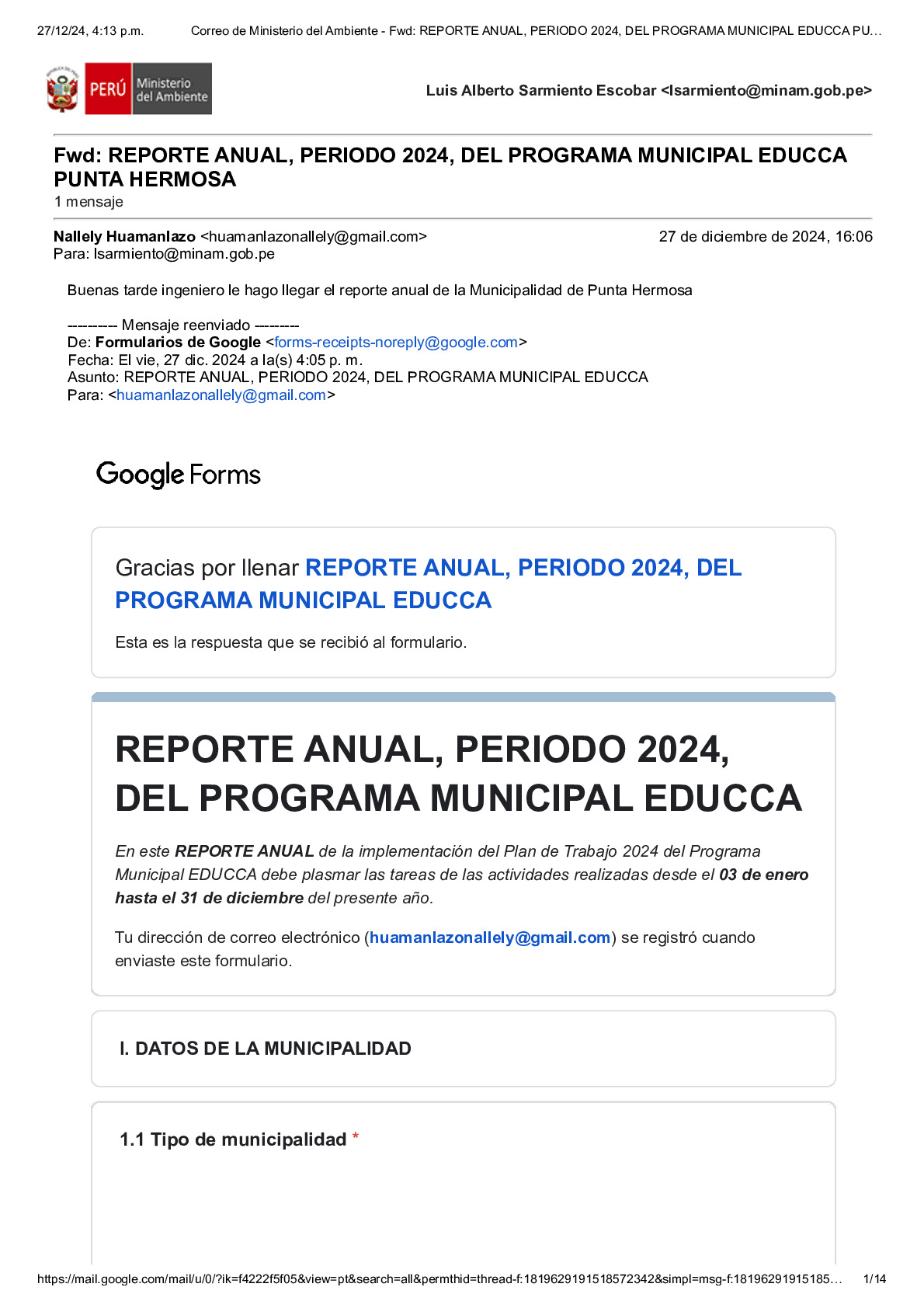 Reporte Anual 2024 del Programa Municipal EDUCCA de la Municipalidad Distrital de Punta Hermosa, Provincia de Lima, Región Lima Metropolitana