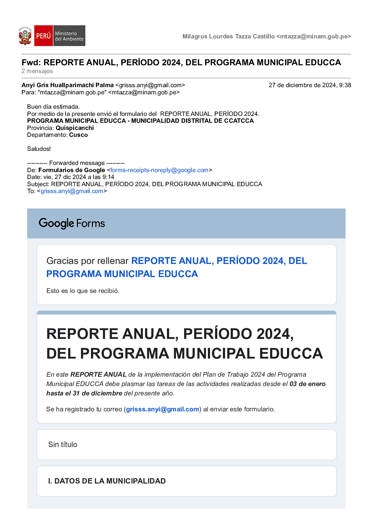 Reporte Anual 2024 del Programa Municipal EDUCCA de la Municipalidad Distrital de Ccatca, Provincia de Quispicanchi, Región Cusco