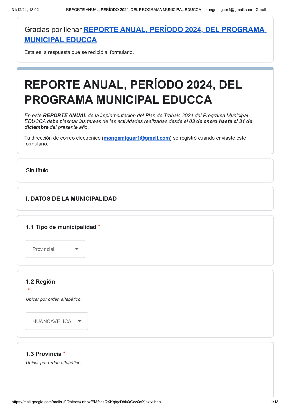 En este Reporte Anual de la implementación del Plan de Trabajo 2024 del Programa Municipal EDUCCA, se presentan las tareas y actividades realizadas durante el período del 3 de enero al 31 de diciembre de 2024. El documento ha sido elaborado por la Municipalidad Provincial de Angaraes, provincia de Angaraes, región Huancavelica, como parte de sus acciones en el marco del Programa Municipal EDUCCA.