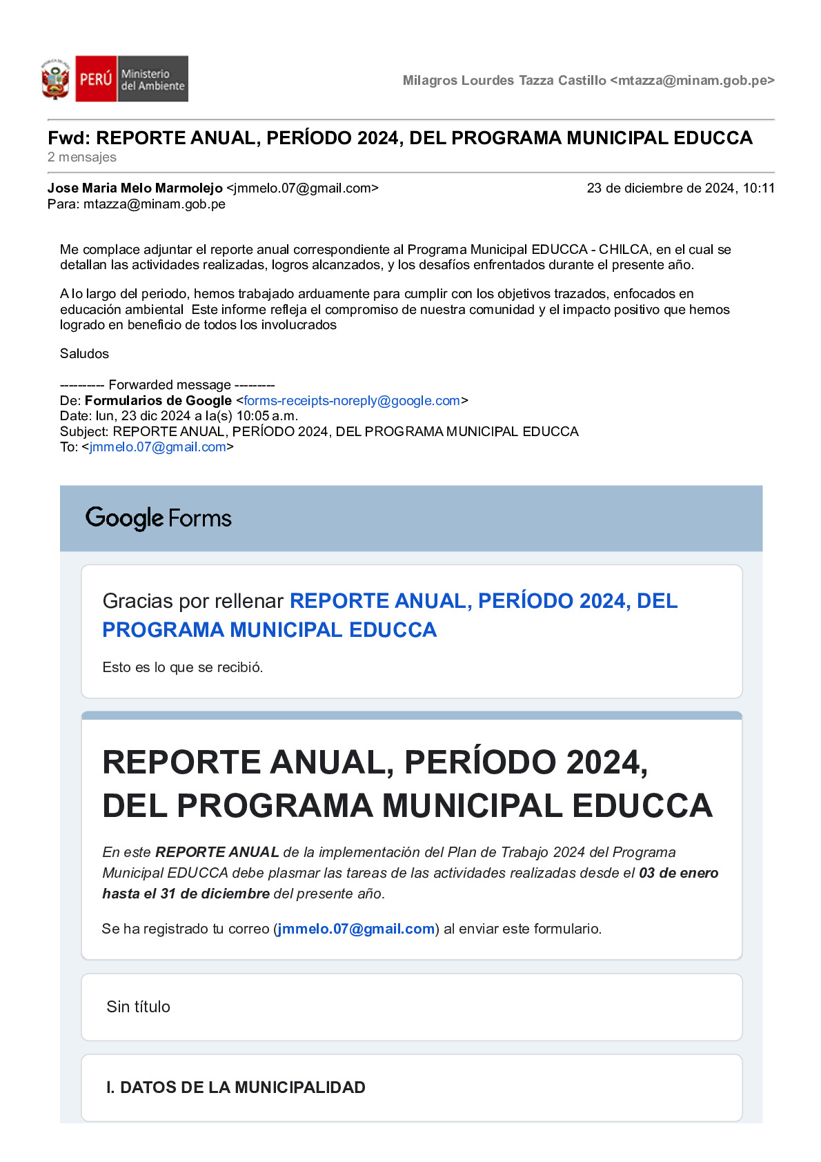 Reporte Anual 2024 del Programa Municipal EDUCCA de la Municipalidad Distrital de Chilca, Provincia de Huancayo, Región Junín