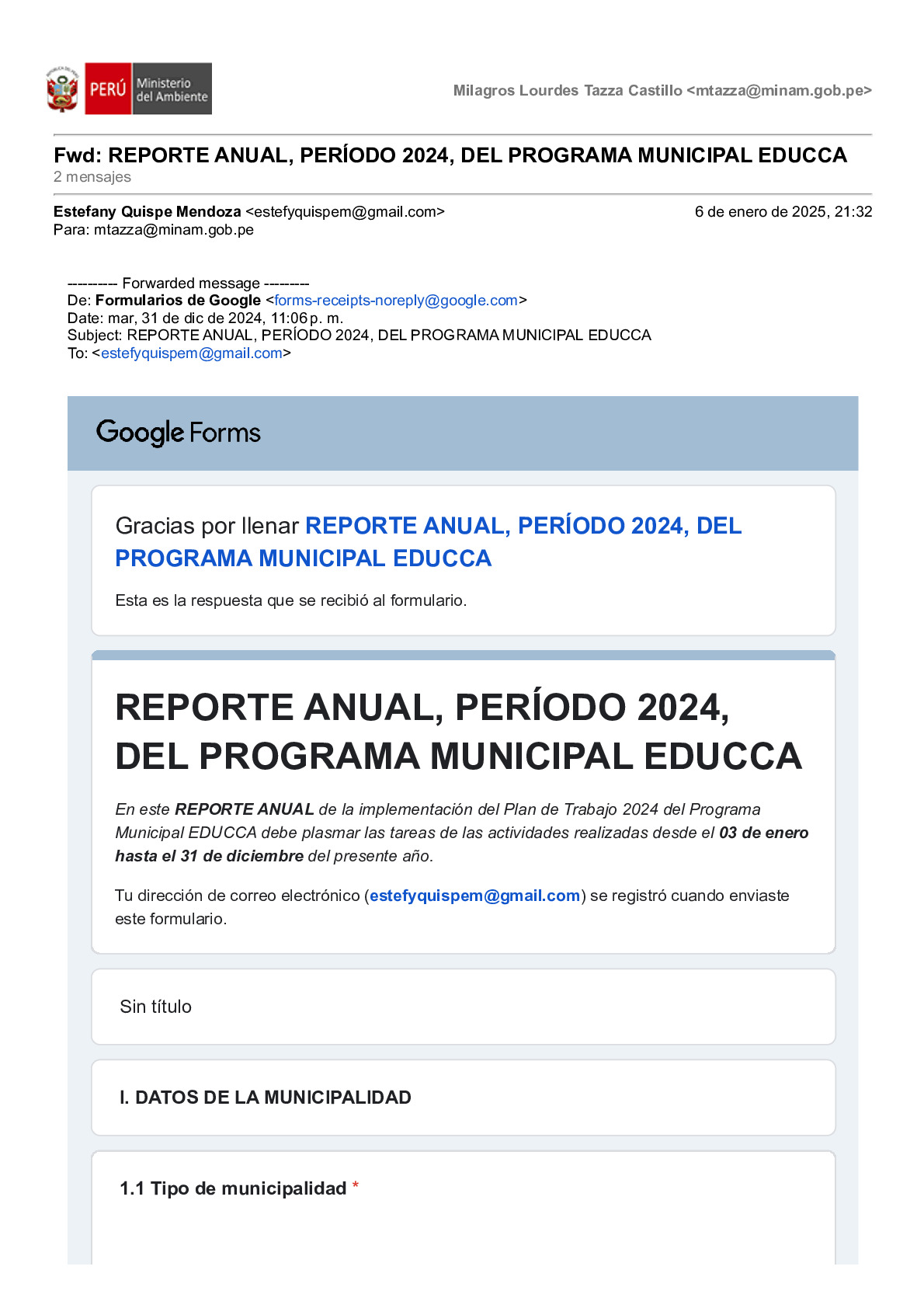 En este Reporte Anual de la implementación del Plan de Trabajo 2024 del Programa Municipal EDUCCA, se presentan las tareas y actividades realizadas durante el período del 3 de enero al 31 de diciembre de 2024. El documento ha sido elaborado por la Municipalidad Distrital de El Tambo, provincia de Huancayo, región Junín, como parte de sus acciones en el marco del Programa Municipal EDUCCA.