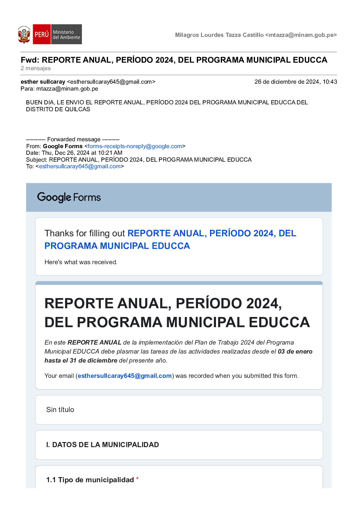 Reporte Anual 2024 del Programa Municipal EDUCCA de la Municipalidad Distrital de Quilcas, Provincia de Huancayo, Región Junín