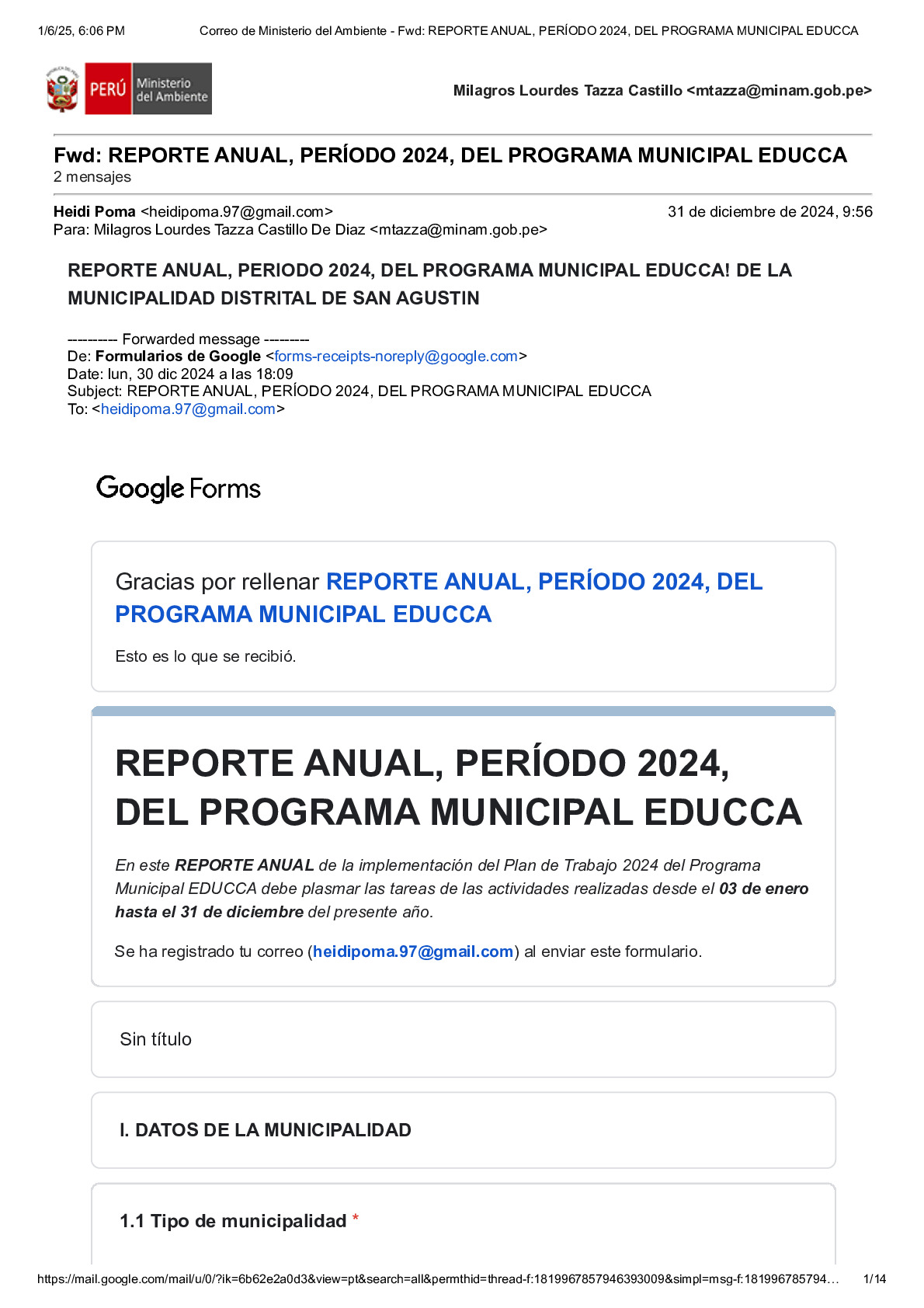 En este Reporte Anual de la implementación del Plan de Trabajo 2024 del Programa Municipal EDUCCA, se presentan las tareas y actividades realizadas durante el período del 3 de enero al 31 de diciembre de 2024. El documento ha sido elaborado por la Municipalidad Distrital de San Agustín, provincia de Huancayo, región Junín, como parte de sus acciones en el marco del Programa Municipal EDUCCA.
