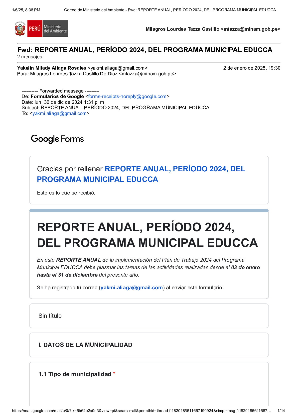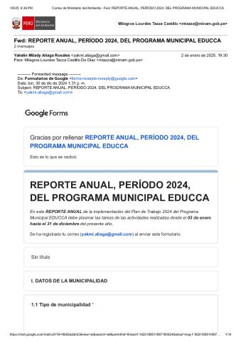 En este Reporte Anual de la implementación del Plan de Trabajo 2024 del Programa Municipal EDUCCA, se presentan las tareas y actividades realizadas durante el período del 3 de enero al 31 de diciembre de 2024. El documento ha sido elaborado por la Municipalidad Distrital de San Jerónimo de Tunán, provincia de Huancayo, región Junín, como parte de sus acciones en el marco del Programa Municipal EDUCCA.