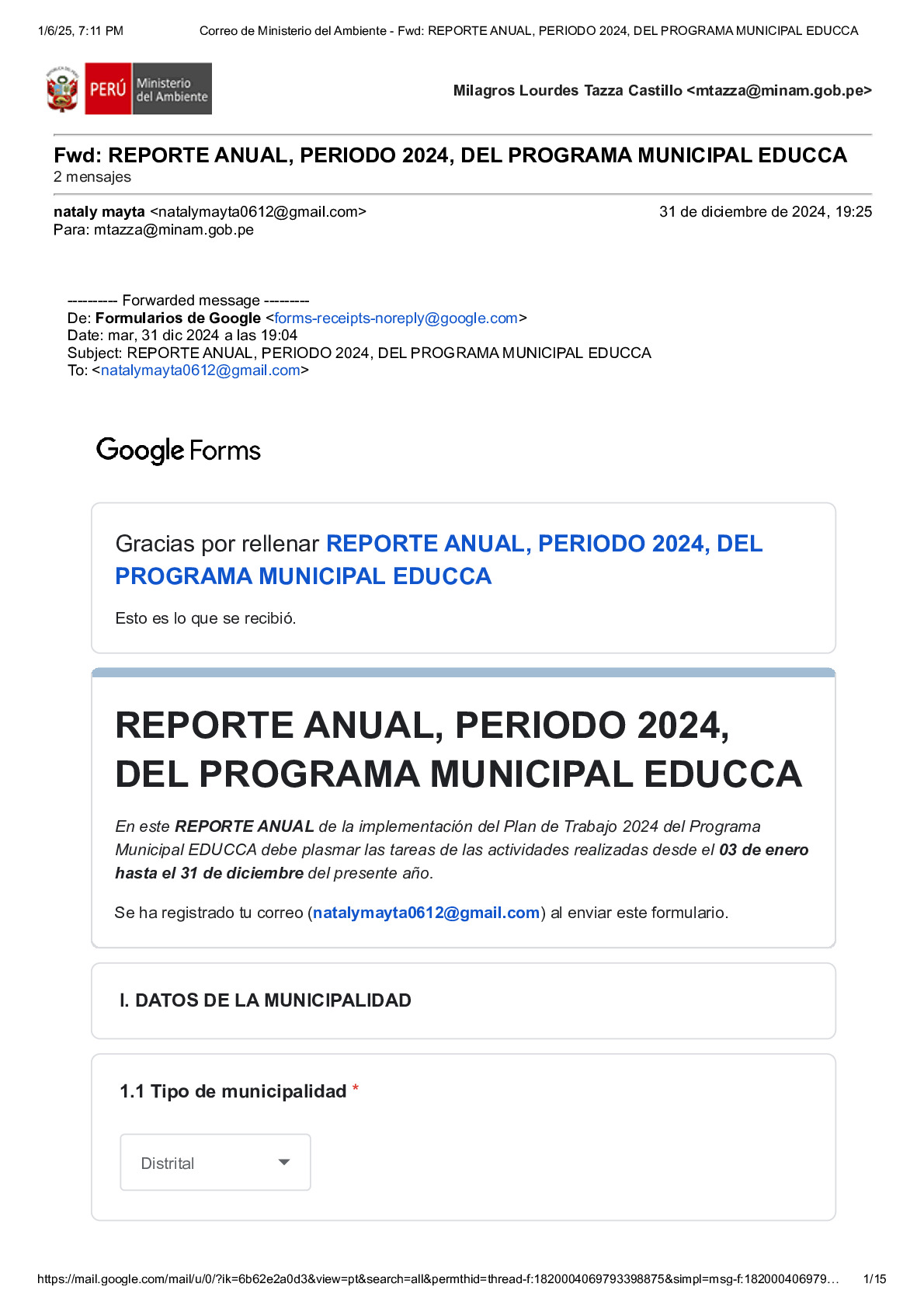 Reporte Anual 2024 del Programa Municipal EDUCCA de la Municipalidad Distrital de Yauyos, Provincia de Jauja, Región Junín