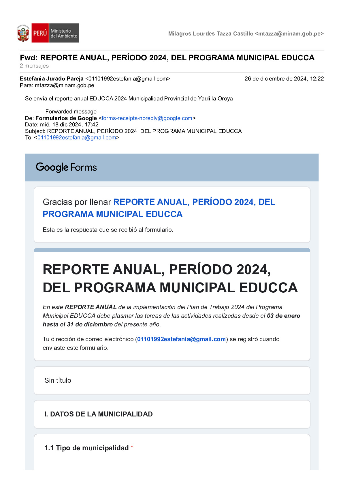 Reporte Anual 2024 del Programa Municipal EDUCCA de la Municipalidad Provincial de Yauli, Provincia de Yauli, Región Junín