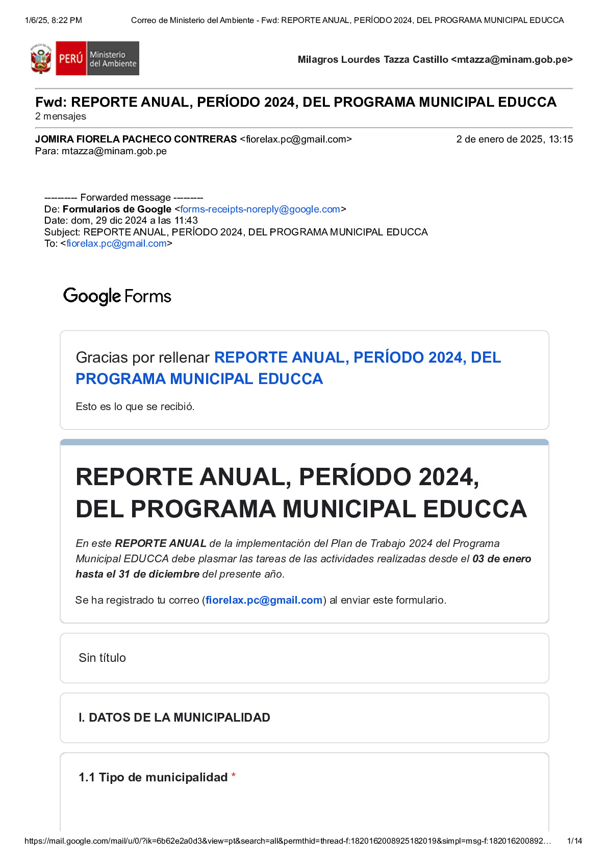 En este Reporte Anual de la implementación del Plan de Trabajo 2024 del Programa Municipal EDUCCA, se presentan las tareas y actividades realizadas durante el período del 3 de enero al 31 de diciembre de 2024. El documento ha sido elaborado por la Municipalidad Distrital de Marcapomacocha, provincia de Yauli, región Junín, como parte de sus acciones en el marco del Programa Municipal EDUCCA.