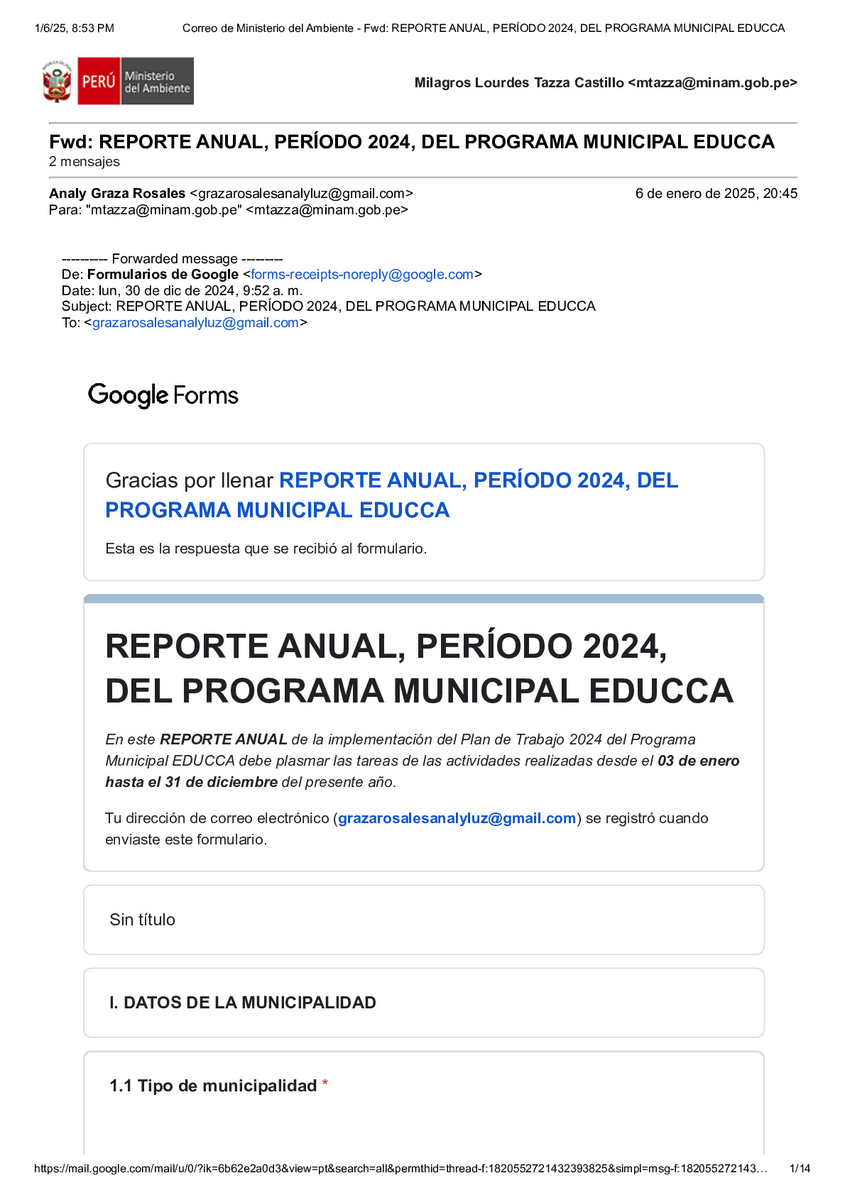 En este Reporte Anual de la implementación del Plan de Trabajo 2024 del Programa Municipal EDUCCA, se presentan las tareas y actividades realizadas durante el período del 3 de enero al 31 de diciembre de 2024. El documento ha sido elaborado por la Municipalidad Distrital de Santa Ana de Tusi, provincia de Pasco, región Pasco, como parte de sus acciones en el marco del Programa Municipal EDUCCA.