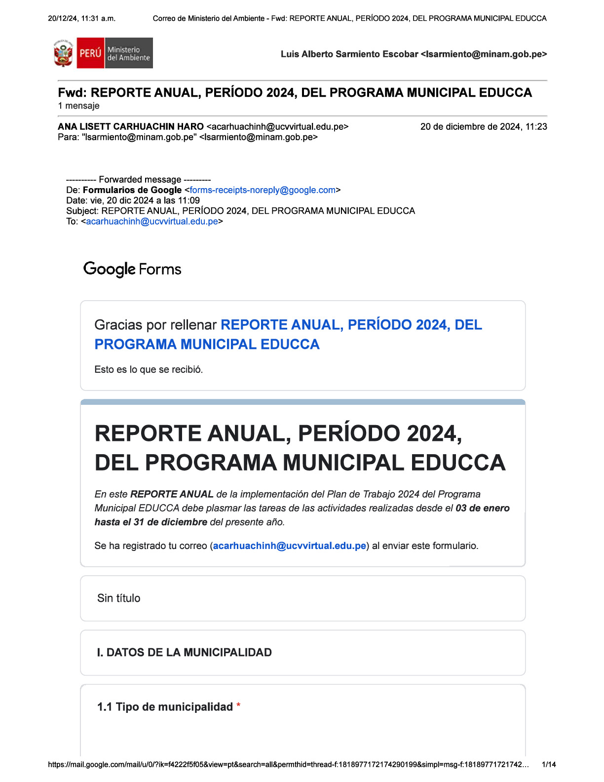 Reporte Anual 2024 del Programa Municipal EDUCCA de la Municipalidad Distrital de Elías Soplín Vargas, Provincia de Rioja, Región San Martín