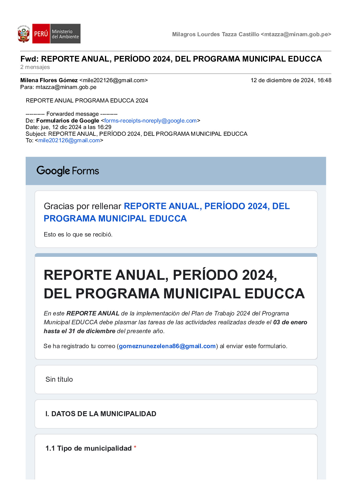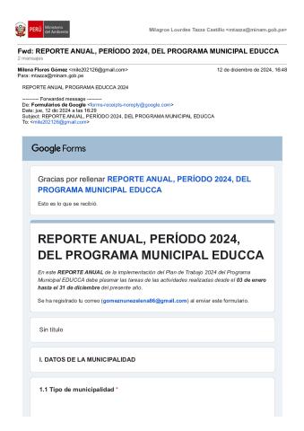 Reporte Anual 2024 del Programa Municipal EDUCCA de la Municipalidad Distrital de Palcazú, Provincia de Oxapampa, Región Pasco