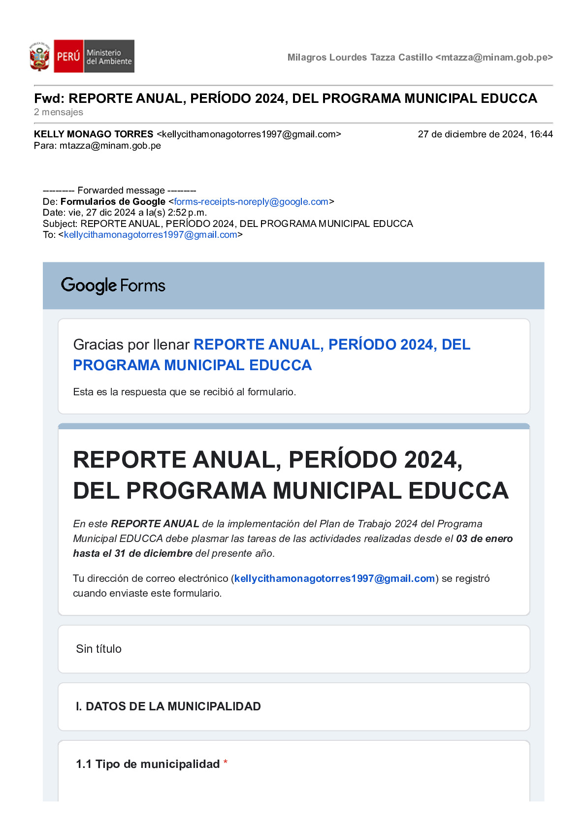En este Reporte Anual de la implementación del Plan de Trabajo 2024 del Programa Municipal EDUCCA, se presentan las tareas y actividades realizadas durante el período del 3 de enero al 31 de diciembre de 2024. El documento ha sido elaborado por la Municipalidad Distrital de Ticlacayán, provincia de Pasco, región Pasco, como parte de sus acciones en el marco del Programa Municipal EDUCCA.