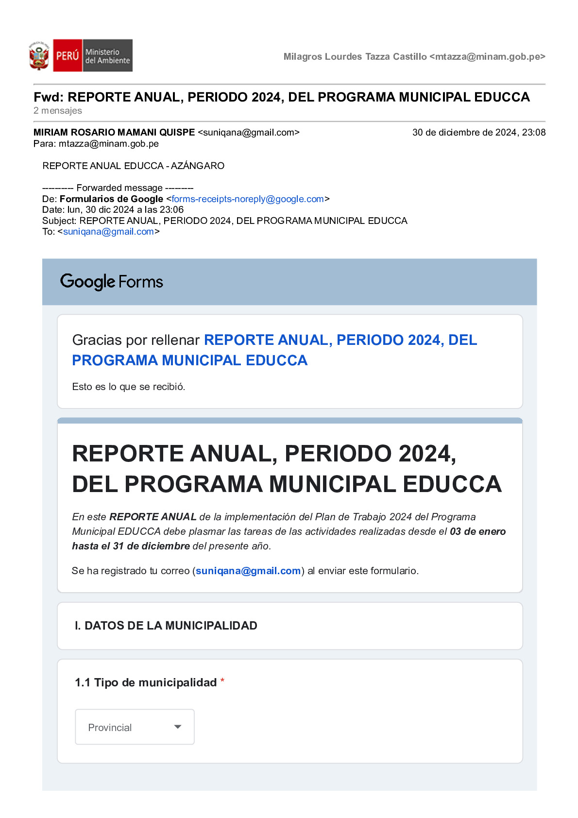 Reporte Anual 2024 del Programa Municipal EDUCCA de la Municipalidad Provincial de Azángaro, Provincia de Azángaro, Región Puno