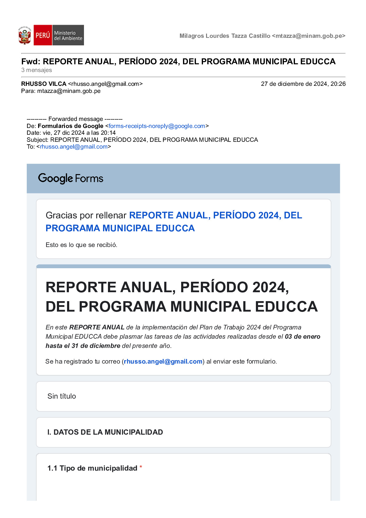 En este Reporte Anual de la implementación del Plan de Trabajo 2024 del Programa Municipal EDUCCA, se presentan las tareas y actividades realizadas durante el período del 3 de enero al 31 de diciembre de 2024. El documento ha sido elaborado por la Municipalidad Provincial de Melgar, provincia de Melgar, región Puno, como parte de sus acciones en el marco del Programa Municipal EDUCCA.