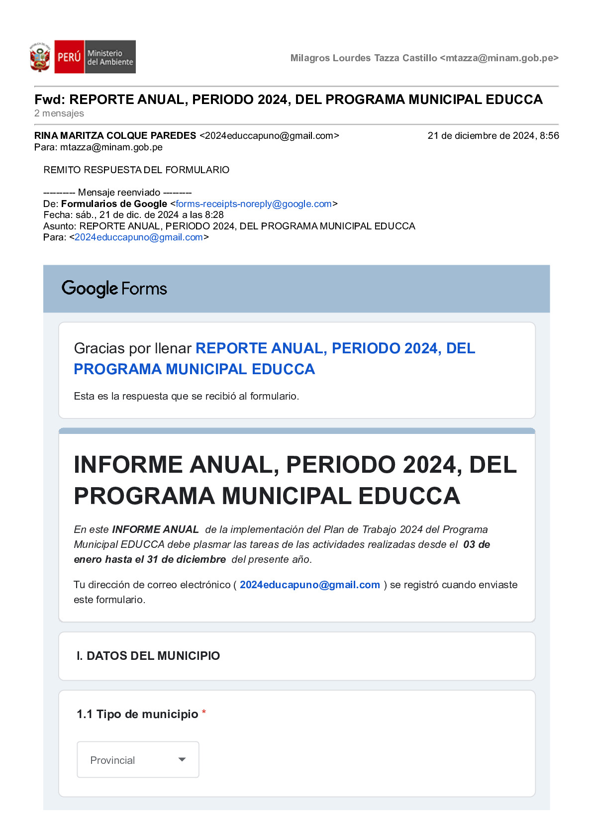 En este Reporte Anual de la implementación del Plan de Trabajo 2024 del Programa Municipal EDUCCA, se presentan las tareas y actividades realizadas durante el período del 3 de enero al 31 de diciembre de 2024. El documento ha sido elaborado por la Municipalidad Provincial de Puno, provincia de Puno, región Puno, como parte de sus acciones en el marco del Programa Municipal EDUCCA.