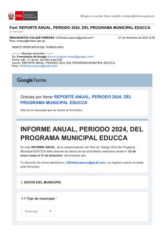 Reporte Anual 2024 del Programa Municipal EDUCCA de la Municipalidad Provincial de Puno, Provincia de Puno, Región Puno