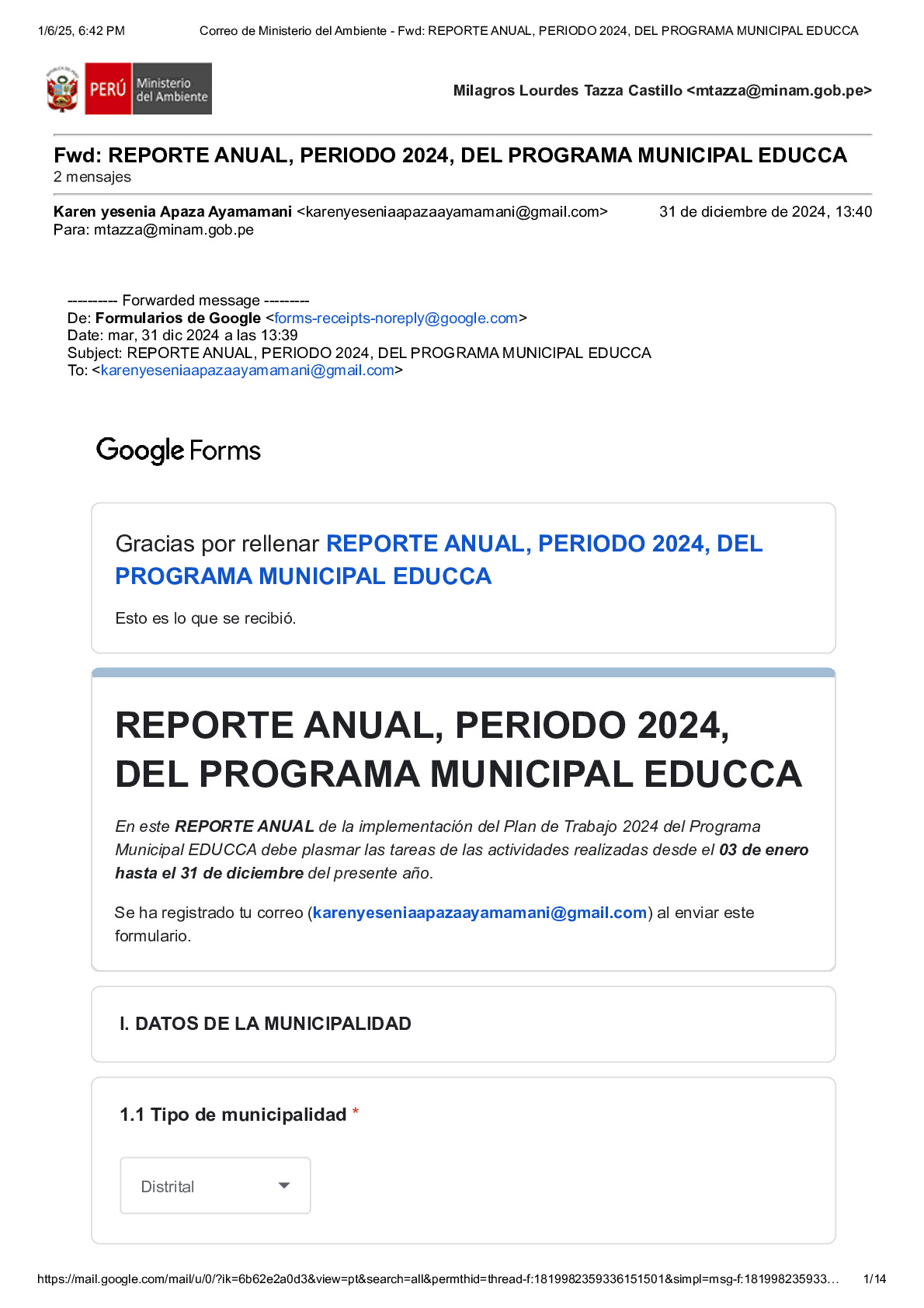 En este Reporte Anual de la implementación del Plan de Trabajo 2024 del Programa Municipal EDUCCA, se presentan las tareas y actividades realizadas durante el período del 3 de enero al 31 de diciembre de 2024. El documento ha sido elaborado por la Municipalidad Distrital de San Miguel, provincia de San Román, región Puno, como parte de sus acciones en el marco del Programa Municipal EDUCCA.