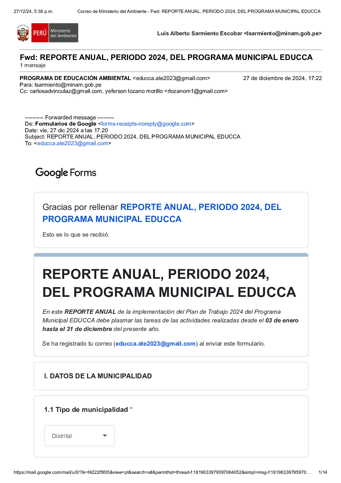 Reporte Anual 2024 del Programa Municipal EDUCCA de la Municipalidad Distrital de Ate, Provincia de Lima, Región Lima Metropolitana