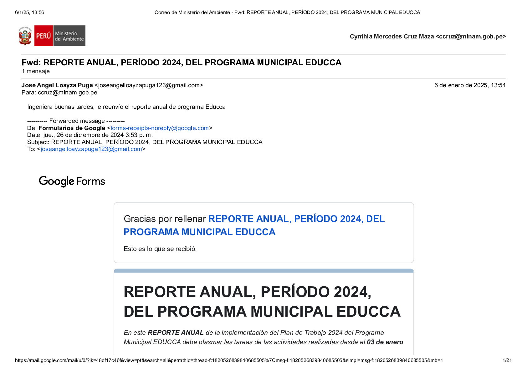 En este Reporte Anual de la implementación del Plan de Trabajo 2024 del Programa Municipal EDUCCA, se presentan las tareas y actividades realizadas durante el período del 3 de enero al 31 de diciembre de 2024. El documento ha sido elaborado por la Municipalidad Distrital de Huancarama, provincia de Andahuaylas, región Apurímac, como parte de sus acciones en el marco del Programa Municipal EDUCCA.