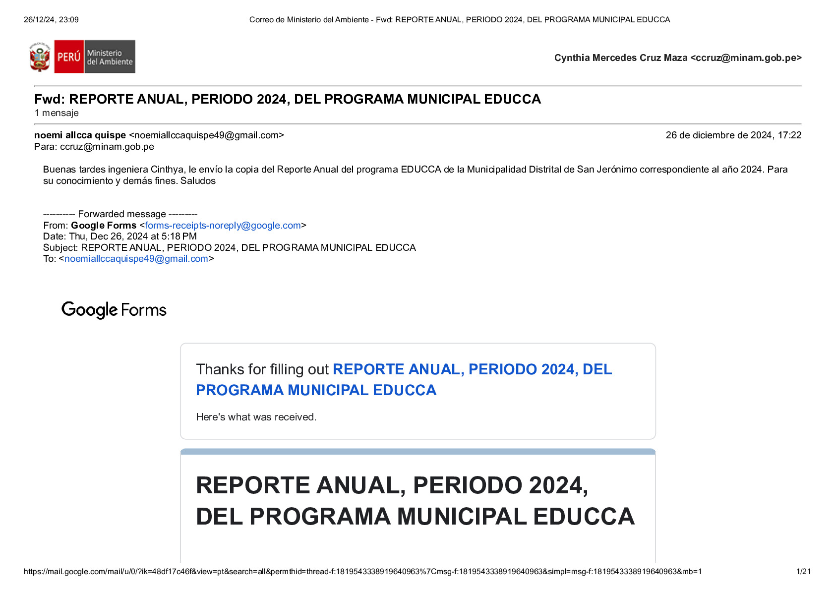 Reporte Anual 2024 del Programa Municipal EDUCCA de la Municipalidad Distrital de San Jerónimo, Provincia de Andahuaylas, Región Apurímac