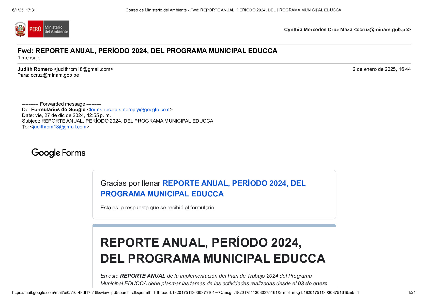 En este Reporte Anual de la implementación del Plan de Trabajo 2024 del Programa Municipal EDUCCA, se presentan las tareas y actividades realizadas durante el período del 3 de enero al 31 de diciembre de 2024. El documento ha sido elaborado por la Municipalidad Distrital de Nepeña, provincia de Santa, región Áncash, como parte de sus acciones en el marco del Programa Municipal EDUCCA.