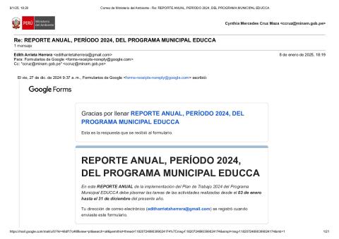 Reporte Anual 2024 del Programa Municipal EDUCCA de la Municipalidad Distrital de San Rafael, Provincia de Ambo, Región Huánuco