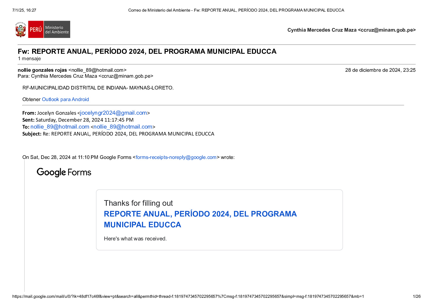 En este Reporte Anual de la implementación del Plan de Trabajo 2024 del Programa Municipal EDUCCA, se presentan las tareas y actividades realizadas durante el período del 3 de enero al 31 de diciembre de 2024. El documento ha sido elaborado por la Municipalidad Distrital de Indiana, provincia de Maynas, región Loreto, como parte de sus acciones en el marco del Programa Municipal EDUCCA.
