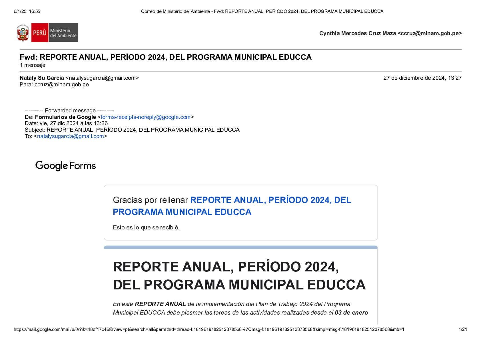 En este Reporte Anual de la implementación del Plan de Trabajo 2024 del Programa Municipal EDUCCA, se presentan las tareas y actividades realizadas durante el período del 3 de enero al 31 de diciembre de 2024. El documento ha sido elaborado por la Municipalidad Provincial de Casma, provincia de Casma, región Áncash, como parte de sus acciones en el marco del Programa Municipal EDUCCA.
