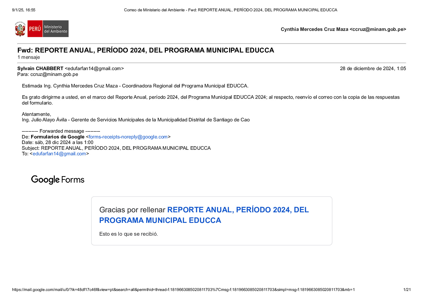 Reporte Anual 2024 del Programa Municipal EDUCCA de la Municipalidad Distrital de Santiago de Cao, Provincia de Ascope, Región La Libertad