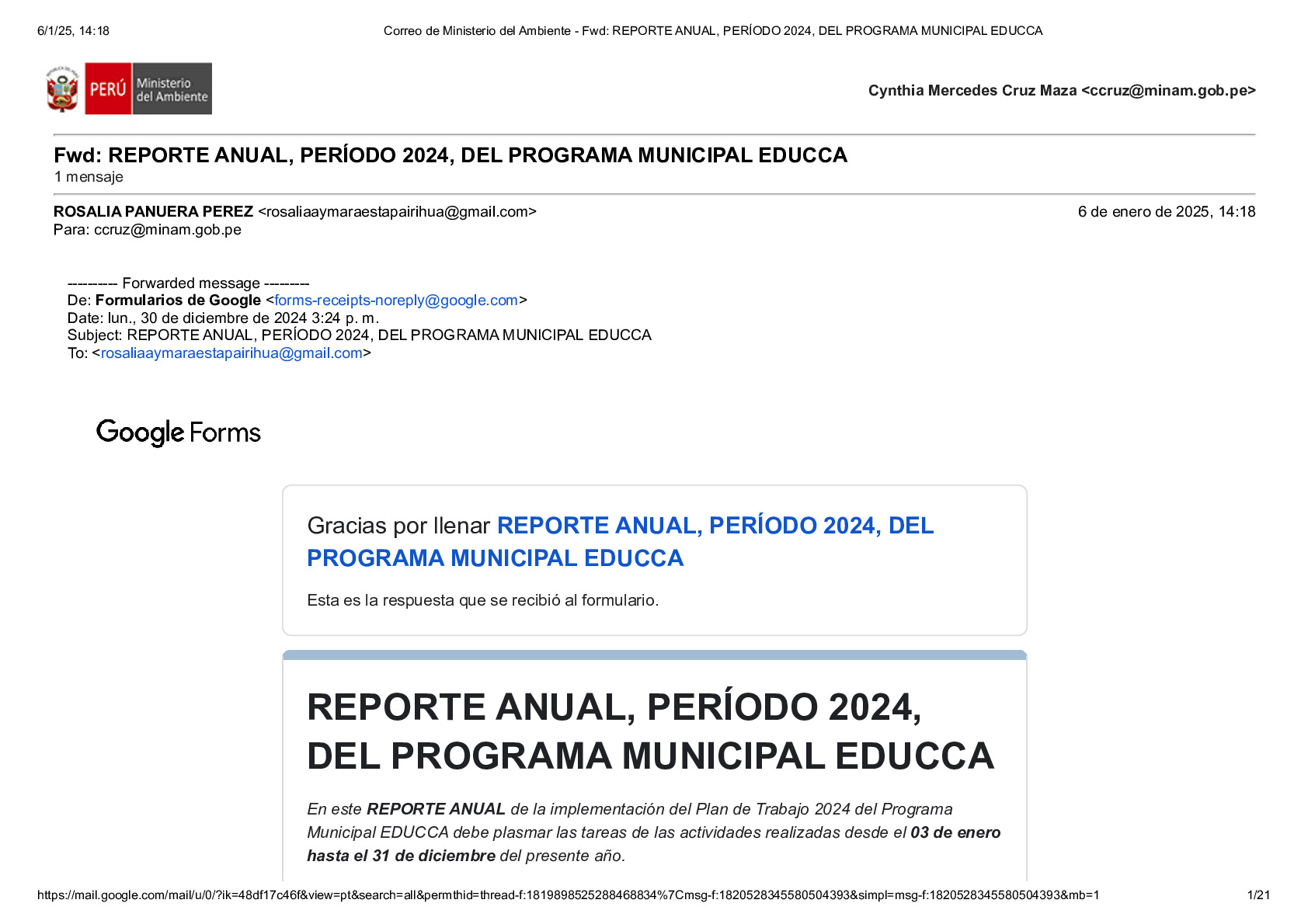 En este Reporte Anual de la implementación del Plan de Trabajo 2024 del Programa Municipal EDUCCA, se presentan las tareas y actividades realizadas durante el período del 3 de enero al 31 de diciembre de 2024. El documento ha sido elaborado por la Municipalidad Provincial de Aymaraes, provincia de Aymaraes, región Apurímac, como parte de sus acciones en el marco del Programa Municipal EDUCCA.