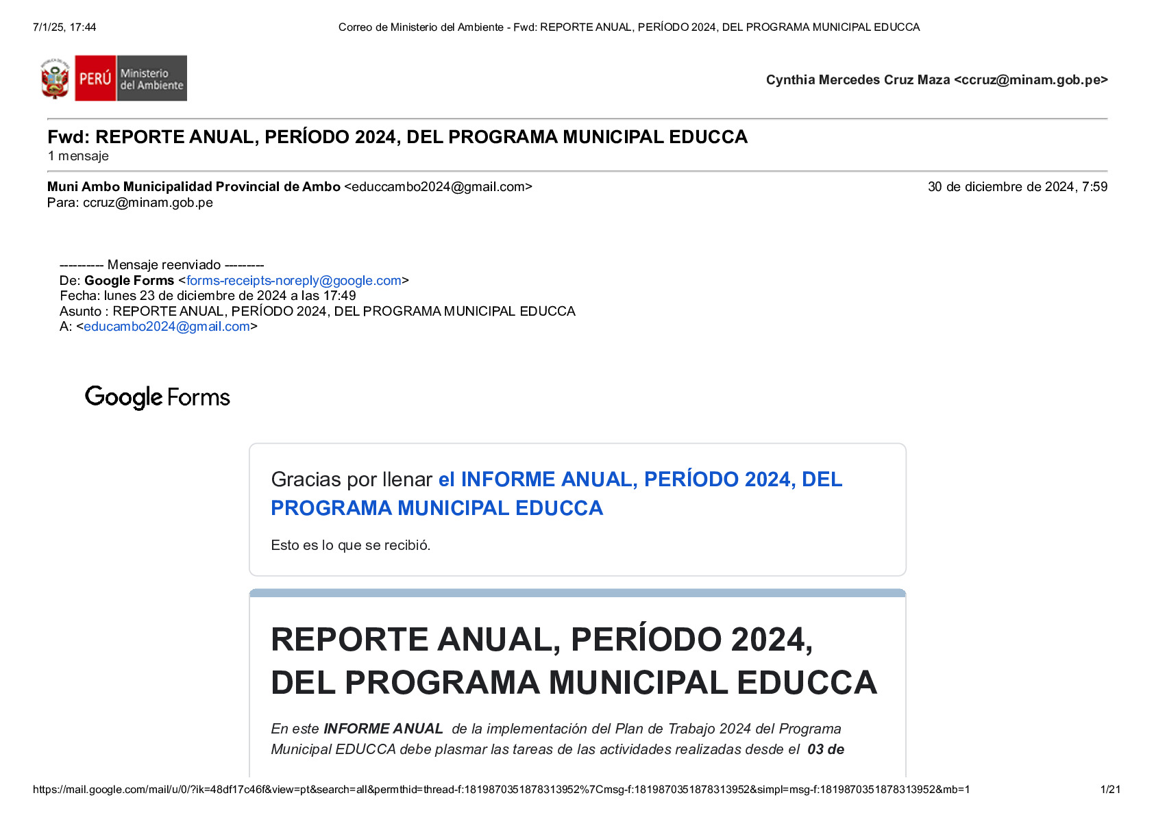 Reporte Anual 2024 del Programa Municipal EDUCCA de la Municipalidad Provincial de Ambo, Provincia de Ambo, Región Huánuco