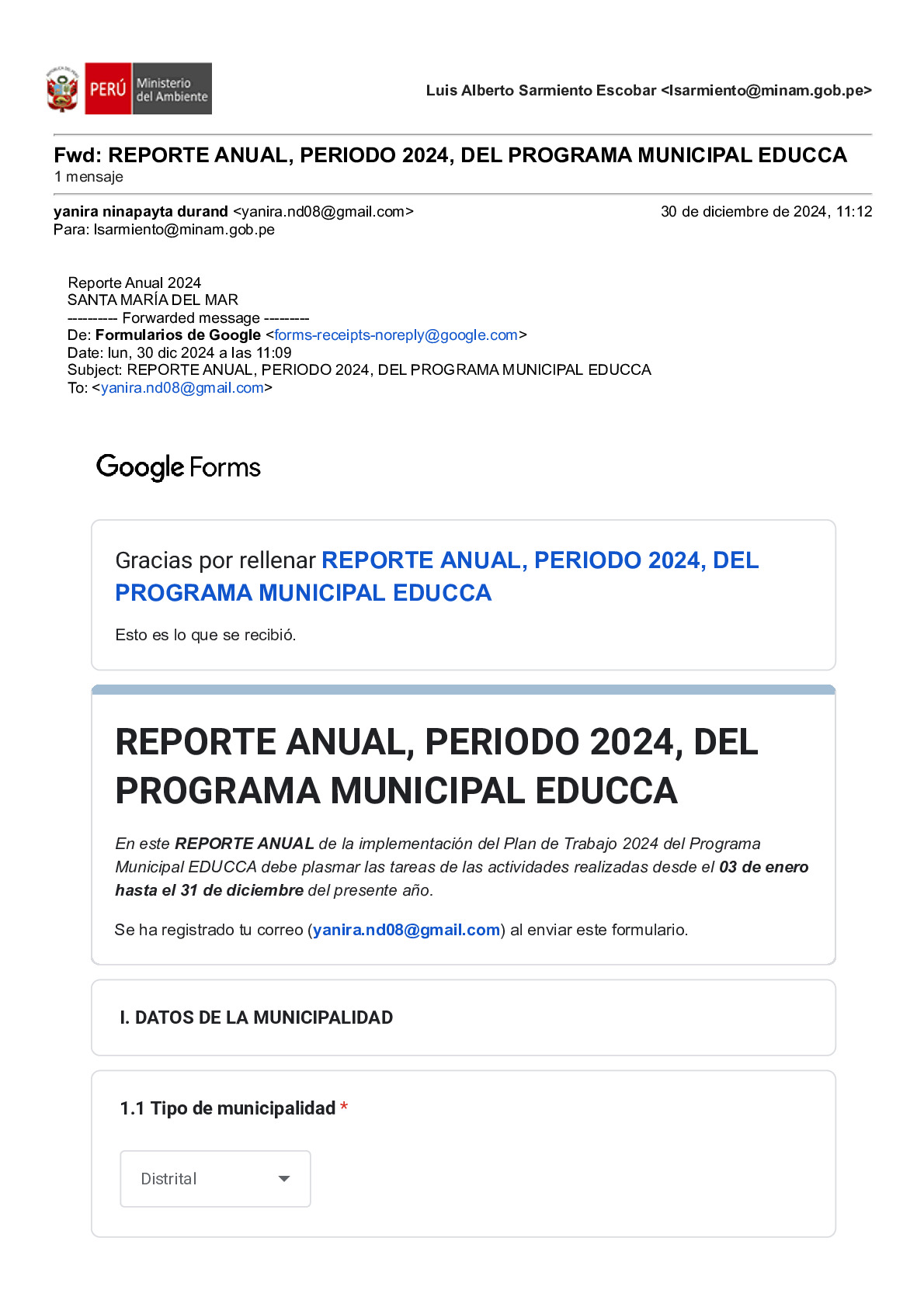 Reporte Anual 2024 del Programa Municipal EDUCCA de la Municipalidad Distrital de Santa María del Mar, Provincia de Lima, Región Lima Metropolitana
