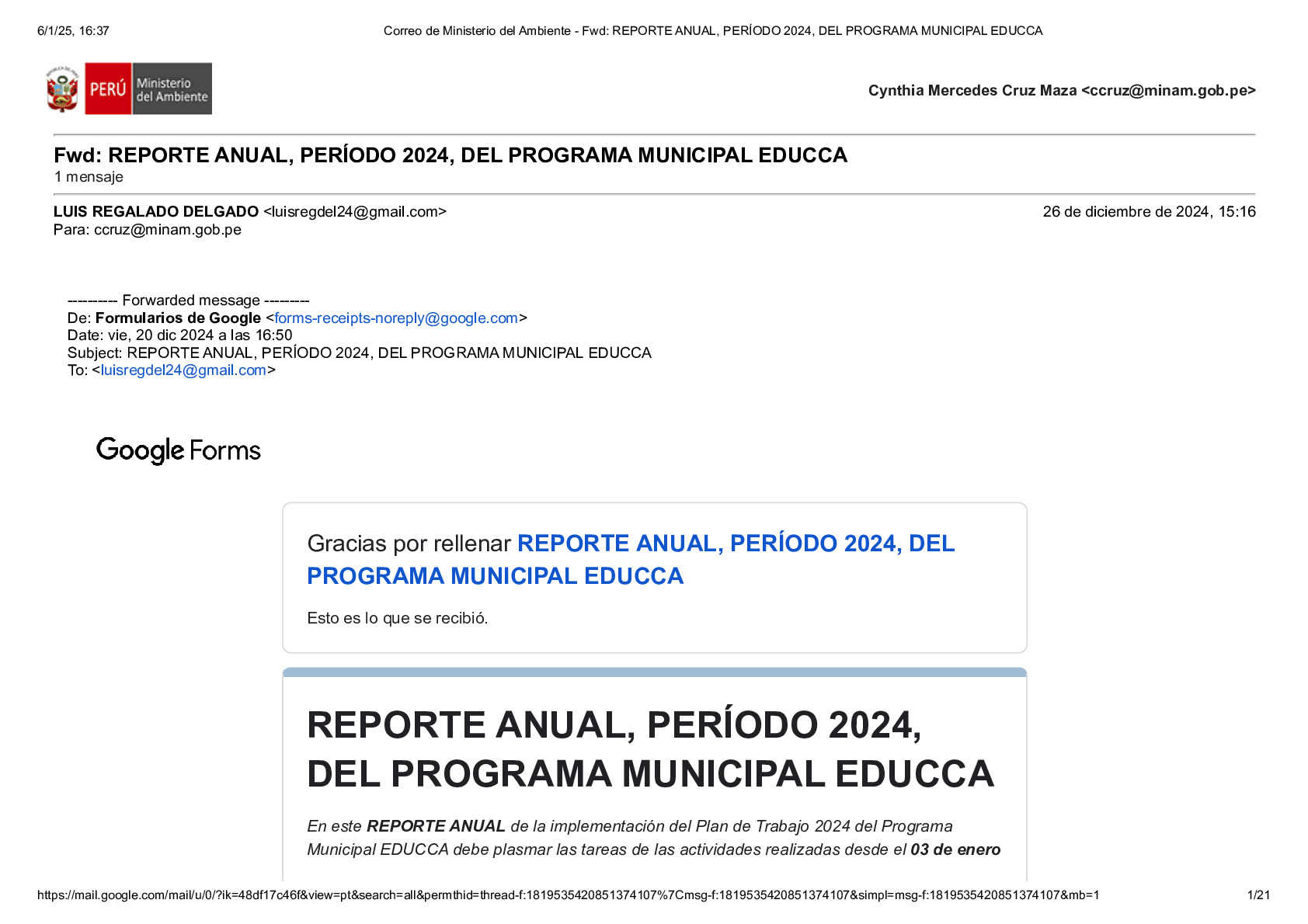 Reporte Anual 2024 del Programa Municipal EDUCCA de la Municipalidad Provincial de Yungay, Provincia de Yungay, Región Áncash