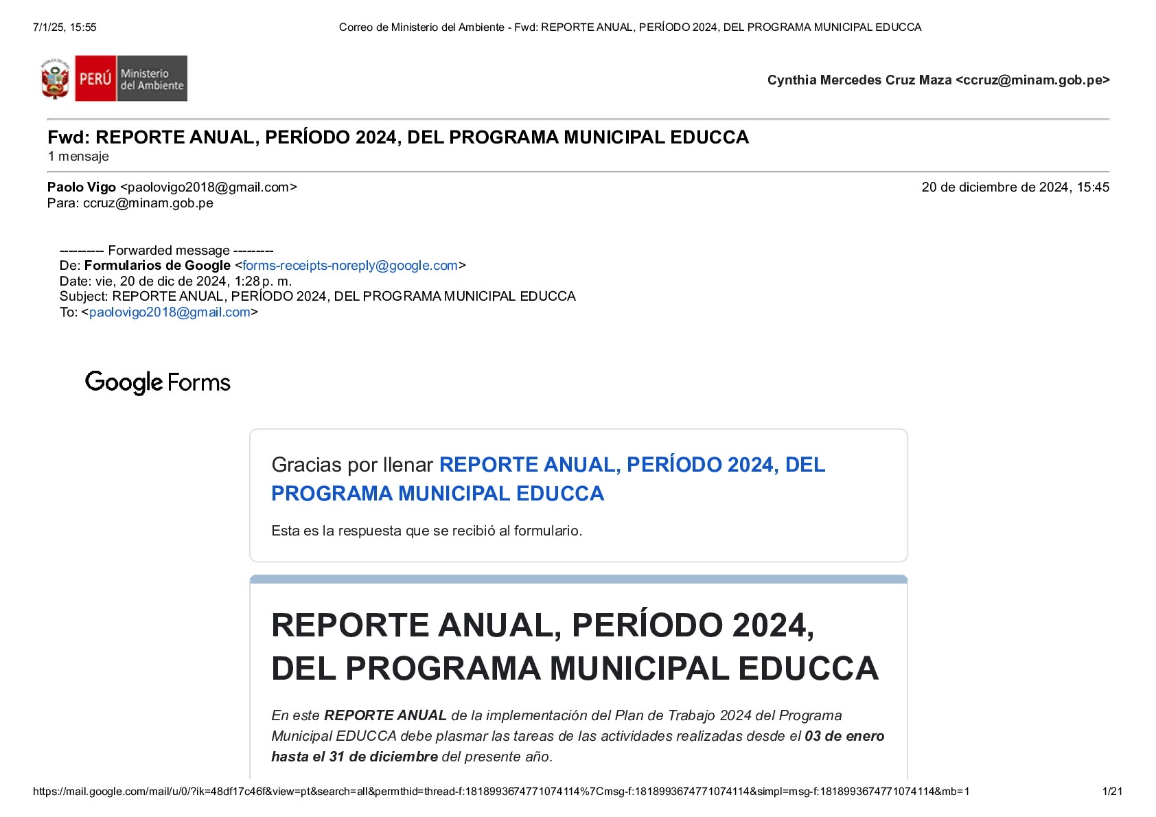 En este Reporte Anual de la implementación del Plan de Trabajo 2024 del Programa Municipal EDUCCA, se presentan las tareas y actividades realizadas durante el período del 3 de enero al 31 de diciembre de 2024. El documento ha sido elaborado por la Municipalidad Distrital de Jeberos, provincia de Alto Amazonas, región Loreto, como parte de sus acciones en el marco del Programa Municipal EDUCCA.