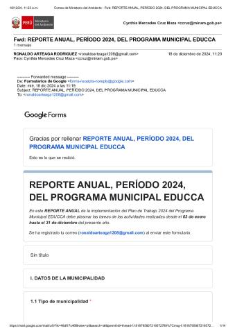 En este Reporte Anual de la implementación del Plan de Trabajo 2024 del Programa Municipal EDUCCA, se presentan las tareas y actividades realizadas durante el período del 3 de enero al 31 de diciembre de 2024. El documento ha sido elaborado por la Municipalidad Distrital de Chugay, provincia de Sánchez Carrión, región La Libertad, como parte de sus acciones en el marco del Programa Municipal EDUCCA.