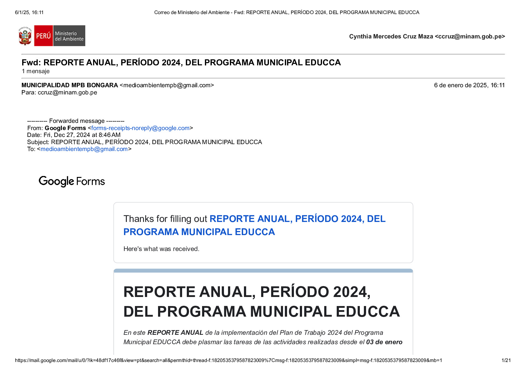 Reporte Anual 2024 del Programa Municipal EDUCCA de la Municipalidad Provincial de Bongará, Provincia de Bongará, Región Amazonas