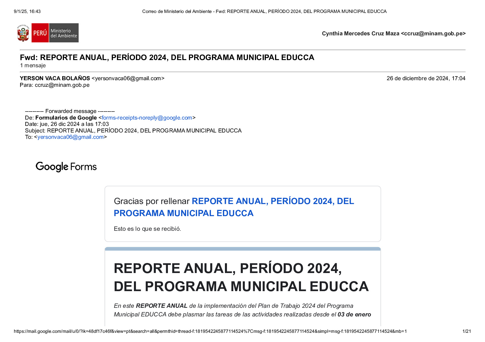 Reporte Anual 2024 del Programa Municipal EDUCCA de la Municipalidad Distrital de Calamarca, Provincia de Julcan, Región La Libertad