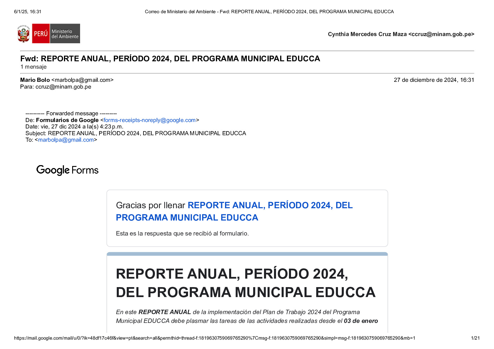 En este Reporte Anual de la implementación del Plan de Trabajo 2024 del Programa Municipal EDUCCA, se presentan las tareas y actividades realizadas durante el período del 3 de enero al 31 de diciembre de 2024. El documento ha sido elaborado por la Municipalidad Distrital de Moro, provincia de Santa, región Áncash, como parte de sus acciones en el marco del Programa Municipal EDUCCA.
