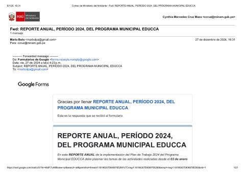 Reporte Anual 2024 del Programa Municipal EDUCCA de la Municipalidad Distrital de Moro, Provincia de Santa, Región Áncash