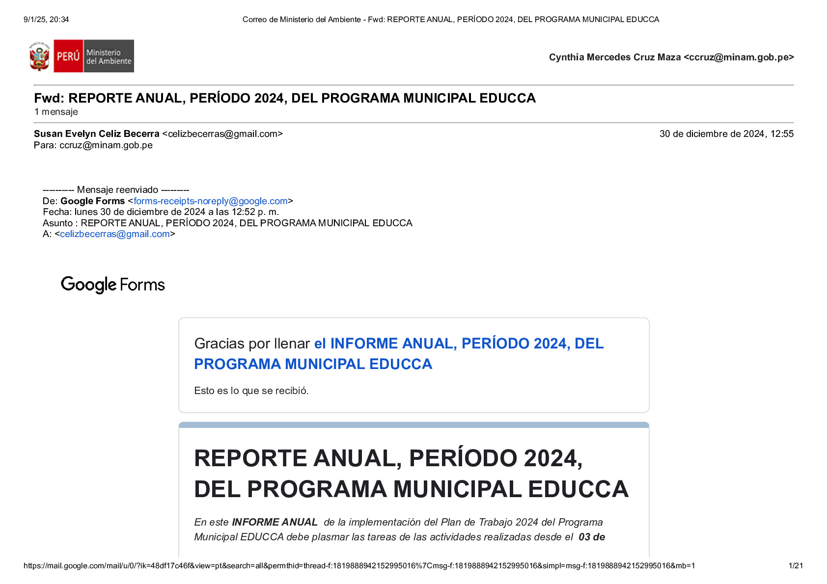 En este Reporte Anual de la implementación del Plan de Trabajo 2024 del Programa Municipal EDUCCA, se presentan las tareas y actividades realizadas durante el período del 3 de enero al 31 de diciembre de 2024. El documento ha sido elaborado por la Municipalidad Provincial de Chepén, provincia de Chepén, región La Libertad, como parte de sus acciones en el marco del Programa Municipal EDUCCA.