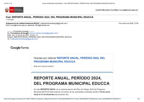 Reporte Anual 2024 del Programa Municipal EDUCCA de la Municipalidad Provincial de Trujillo, Provincia de Trujillo, Región La Libertad